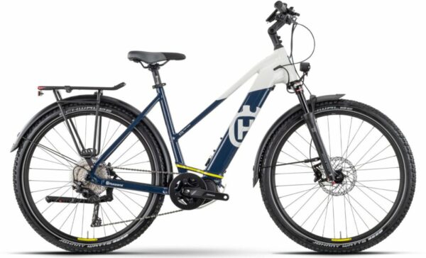 Produktbeschreibung: Husqvarna Cross Tourer CT3 (2022) – 27.5 Zoll 630Wh 11K Trapez – white blue